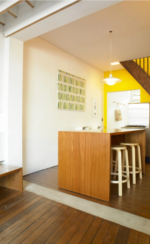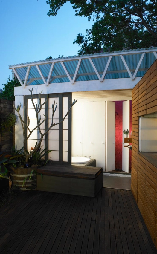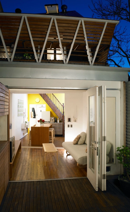 The Darlington House was an opportunity to experiment with a number of design ideas centred around the concept that nature in an inner city environment. Nature can permeate our everyday lives and the design of a house should facilitate this connection with the elements. Built on a very small block of 50 square metres, the brief emphasised the need to maximise space within the existing terrace house. Through a loft conversion and the seamless integration of indoor/outdoor living areas, the usable floor space within the property increased while providing the clients with a unique spatial experience. The design optimises natural light and uses white surfaces to aid in the perception of space. A number of sustainable systems and materials have been incorporated in the scheme including recyclable Blackbutt timber, zero VOC paints and oil finishes, a grey water reuse system and efficient water and lighting fixtures.