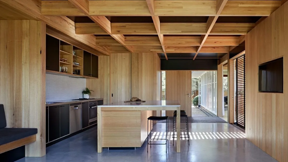 'We specified Victorian ash for the internal timber linings and cabinetry veneers for the way it complimented our design while also harmonising with and providing continuation to the timber lined ceiling of the original 1960’s home'. MRTN Architects