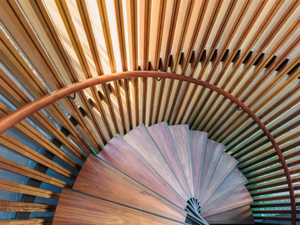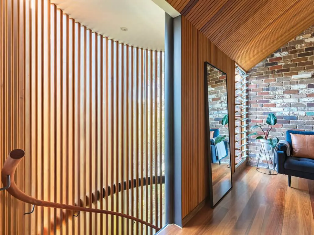 The result is AQUAS PERMA SOLAR FIRMA – a beautiful, small footprint home which has reinvented the terrace typology and lifestyle. Vertical circulation is shifted to the front façade and a circular stair is formed by an array of glass and timber battens which doubles as an internal garden. The house combines innovative architectural design with near carbon neutral green initiatives.