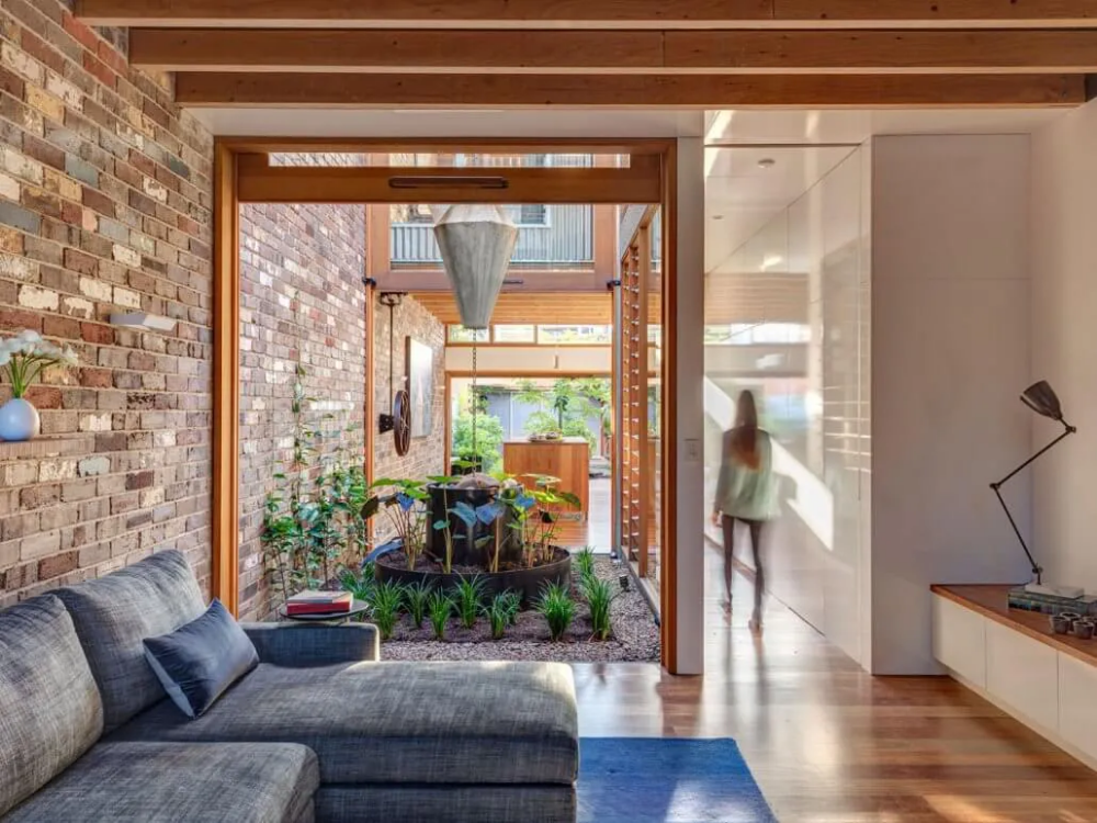 A primary objective of the design process was to find a way to ensure the design would contribute to the longevity of the building. To this end, a central courtyard provides all internal spaces with superior natural light and access to green spaces despite site restrictions, while planting beds are integrated into the home to improve internal air quality.