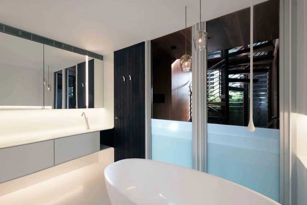 Winner of the 2019 National Sustainability Awards for both New House & Intelligent Building, Highly Commended at the 2019 World Architecture Festival Awards held in Amsterdam in December and Winner of the 2019 Master Builders Association Design & Construct Excellence in Housing Awards. Designed to celebrate the Sydney climate while pushing all limits of Sustainability in every aspect of the project. This home is a direct response to the ‘Climate Emergency’ facing our country and our planet.