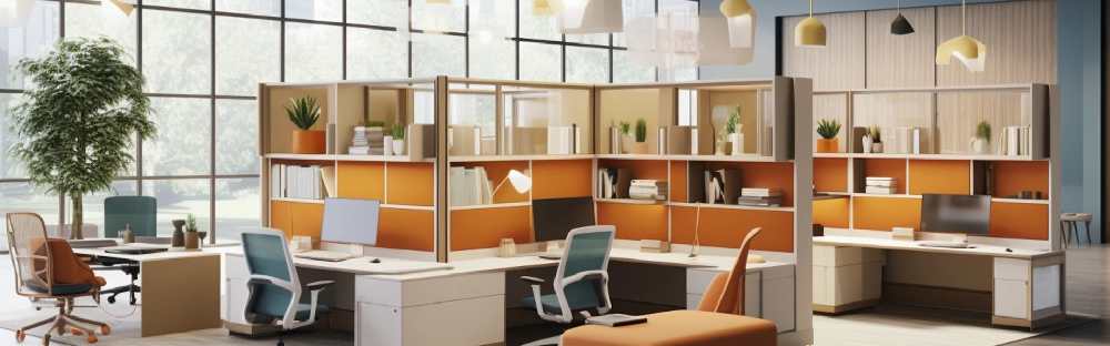 Sustainable cubicle dividers are partitions designed for open office spaces that have a focus on environmental responsibility. They can be made from materials that are recycled or biodegradable like reclaimed wood, bamboo, or natural fibres, reducing waste and lowering resource demand. Incorporating living plants, modular designs, and durable construction techniques further enhance their sustainability as well as create a biophilic working environment. These dividers promote a healthier work environment, minimize environmental impact, and contribute to a productive and eco-conscious workspace.