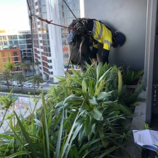 Using web or square mesh or cables to train climbing plants and shrubs to cover buildings and walls. This system is extremely cost-effective and requires minimal equipment access.