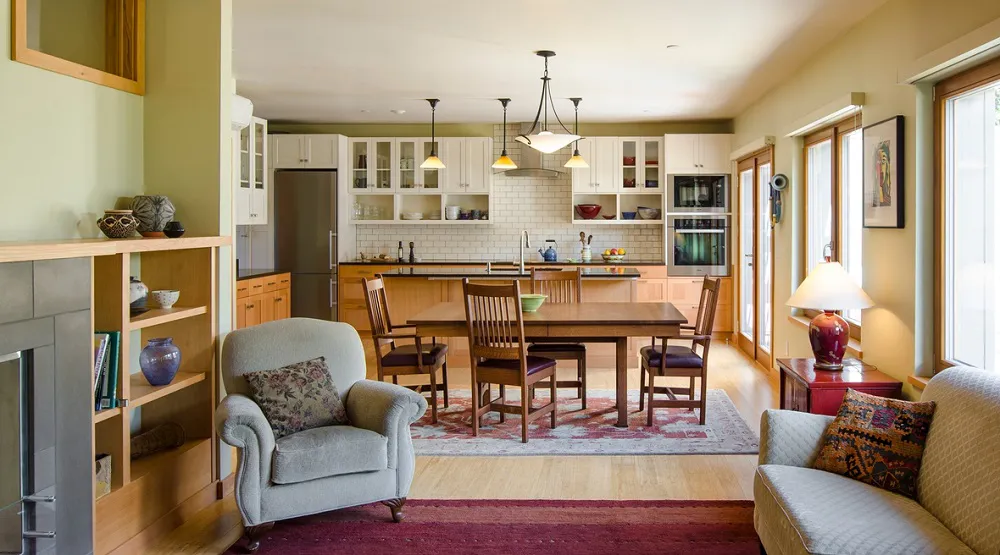 The townhouses are contemporary and yet pay homage to the great craftsman tradition of the Buckman neighbourhood. Many of the homeowners worked with 2Yoke Design on their interior design. The open floor plans encourage informal gatherings centred around the dining and kitchen areas. First-story master suites allow the owners to live entirely on the first floor if desired or needed.