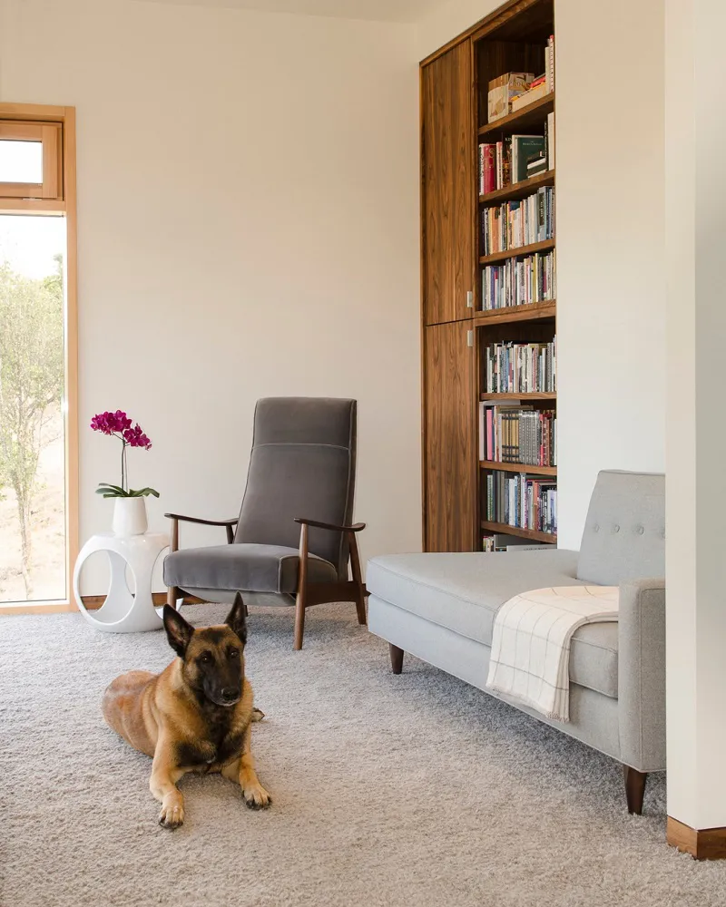 When designing and building to the Passive House standard, the factors of climate, elevation and site orientation are critical to meeting the standard’s low-energy consumption requirements. Generally speaking, a cube facing south is the ideal shape and orientation to minimize energy losses and maximize free energy gains. In this case, the house’s north-facing site on a steep hillside, along with its rectangular shape, made pursuing the technical Passive House certification a challenge. The energy modeling and Passive House design build principles where still deemed relevant and valuable, and ultimately a number of important building envelope decisions were incorporated into the home’s final design. The house is wrapped in structural insulated panels (SIPs), has triple-pane Unilux windows and utilizes a Zehnder heat recovery ventilation system.
