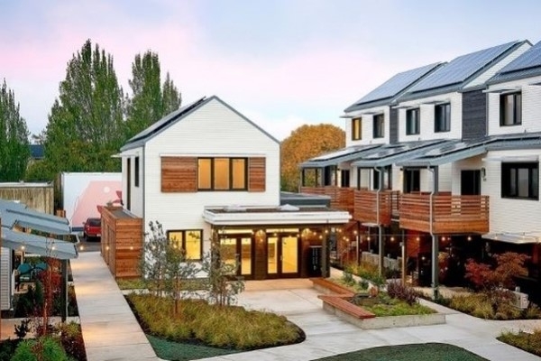 From the United States our latest green building professional, Green Hammer Design Build, shows off a zero energy community in North Portland that includes five buildings — a mix of owner and renter units with front porches and balconies oriented around a central courtyard. All five buildings were designed using Passive House standards and modeling to meet Zero Energy goals, meaning the buildings will produce all or more of their energy needs from an 82-kilowatt solar array. A 2,000-square-foot common house is open to all tenants to use as a place to share meals, exercise and host gatherings. It can also serve as a community shelter during the case of a power outage. Learn more about Tillamook Row here.