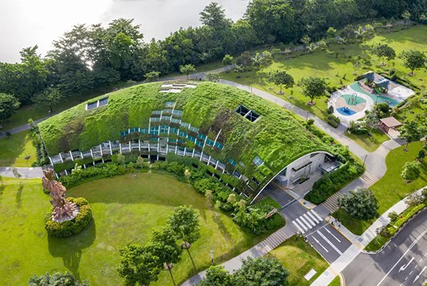 The unique architectural concept of the campus has deep symbolic significance on how nature and education come together. From afar, the building emerges as a ‘rolling hill’ in a park that seamlessly blends into the environment, as if the campus is rising from the park grounds. The building also symbolises a cocoon-like space that provides a truly nurturing environment.