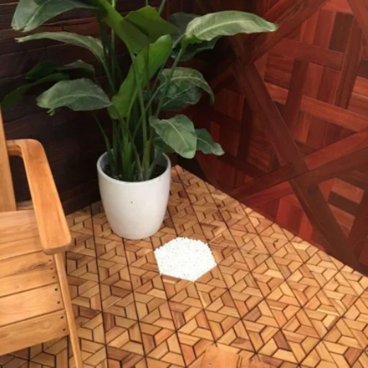 Hexidek is a unique patented decking product developed by Ecquality. There are a variety of ways to create your hexidek. One method is to click the base together on the surface to be covered and then to attach the small wooden tiles. That is all there is to it. The designs you can make are limited only by your imagination. The other way is to purchase the tiles ready-made by the case, which is quick and easy, but limits your designs to simple (but effective) repeating patterns.