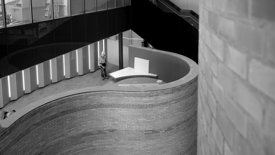 Landscape, and its change over time, has been a strong theme for the site of the Clayton campus - starting with indigenous bushland, then colonial farmland, suburban subdivision and finally a university campus.Streets, courtyards, bridges, balconies and stairs are transformed into ravines, clearings, strands, perches, escarpments and amphitheatres that are choreographed to invent a new landscape of the interior.