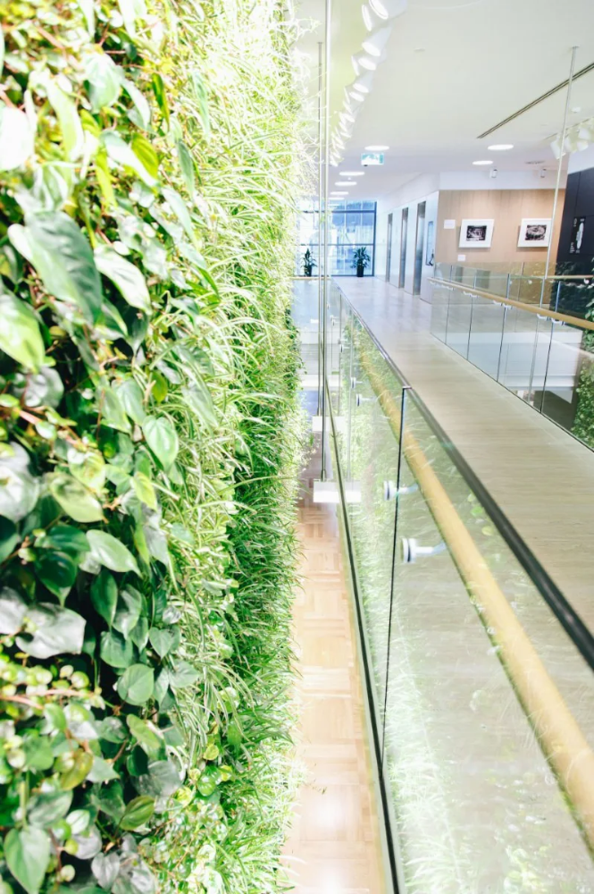 Junglefy provided the hero design element of the Lendlease global headquarters at Barangaroo South, a six-metre high Breathing Wall, creating a stunning entrance to the office as well as providing health and wellbeing benefits. From the outset, this project was a collaborative effort with Lendlease including design, marketing, contract negotiations and even down to the planting of the modules. Lendlease held an internal competition in which eight of their team wrote in 25 words or less what their new workplace meant to them. The winning entries were granted a day off to come out to the Junglefy nursery to do a day of planting for their own project.