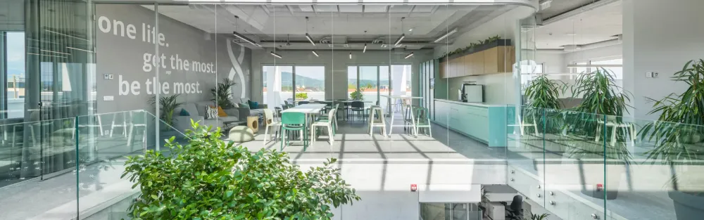 - Isn’t it awesome to work in a space that’s filled with life? Green plants all around. And look at the giant tree in the central atrium. Yes, it’s a real tree!