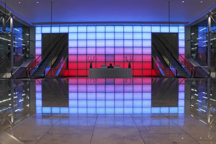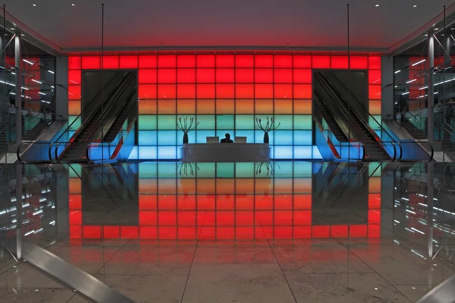 Through backlighting one cannot only make an exciting design object but also use colour RGB LEDs to generate colour palettes, as Glaskeramik is a very even light diffuser. Sometimes with a lightbox 5-10 cm depth of construction or simple LED arrays or LED strips directly on the material or using LED light sheets (such as Polylite) where depths are minimal, areas of even diffusion are large.