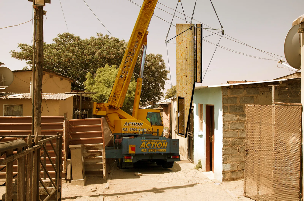 This project is found in the township of Alexandra, Johannesburg. This largely informally developed area which borders on Sandton, remains a place of poor infrastructural development with many top-down urban renewal plans failing. It was known as the “dark city” during apartheid because of no electricity provision. Today, services are still inadequate or faulty, spurring a new wave of civil protests.