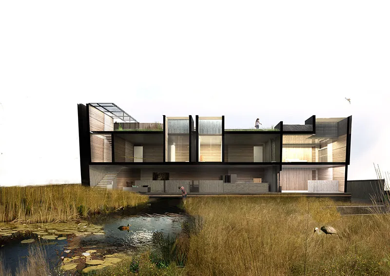 Through an extensive research process a created wetland was seen as the best landscape to increase biodiversity. An expedition was then taken to the Okavango Delta in Botswana to study a wetland in pristine condition. Numerous elements of inspiration and research were then incorporated into the design from this trip.