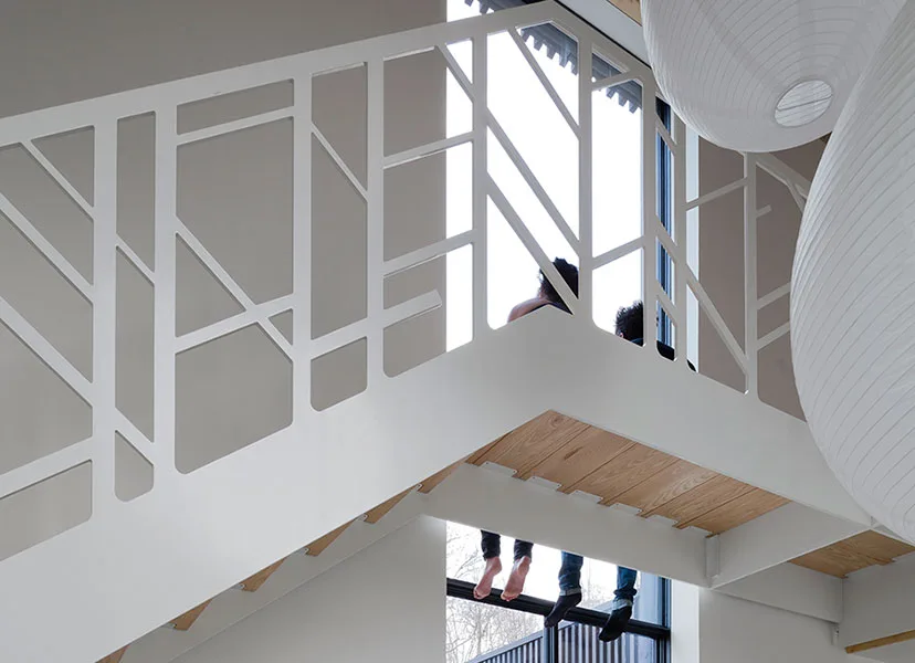 For the interior the goal was a diverse but clear layout. The knot responds to this by separating the house into three distinct wings that come together in the heart of the house: the double-height dining room. The wings offer privacy and seclusion, but company is never far away.