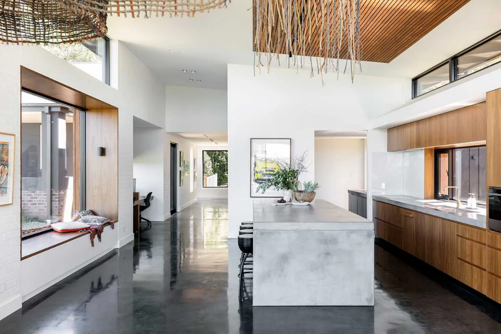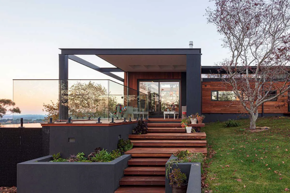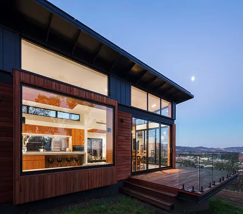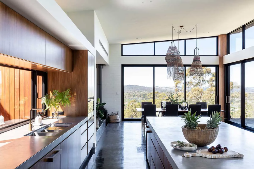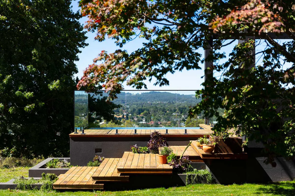 A contemporary, sustainable addition to an existing 1930’s dwelling. With the house already commanding a spectacular view over the Bowral town, the new addition was to broaden this view to the south-east and connect the house with the landscape and existing tennis court. Soaring ceilings and a large expanse of thermally-broken glazing allow the occupants to watch the weather roll in from the south, and look down over the early morning blanket of fog which envelopes the town.